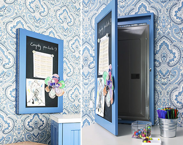 O quadro de luz, ou de distribuição é um item imprescindível para a instalação segura da rede elétrica de qualquer casa. Ele deve ser visível e de fácil acesso, para qualquer emergência. Mas nem sempre é fácil ignorar a aparência dessa grande caixa de metal ou plástico na parede, pois quase sempre ela acaba destoando da decoração do ambiente. Por isso trazemos algumas ideias para tentar camuflar esse equipamento. Já mostramos aqui como a Ariane fez no apartamento dela, confira outras ideias abaixo!